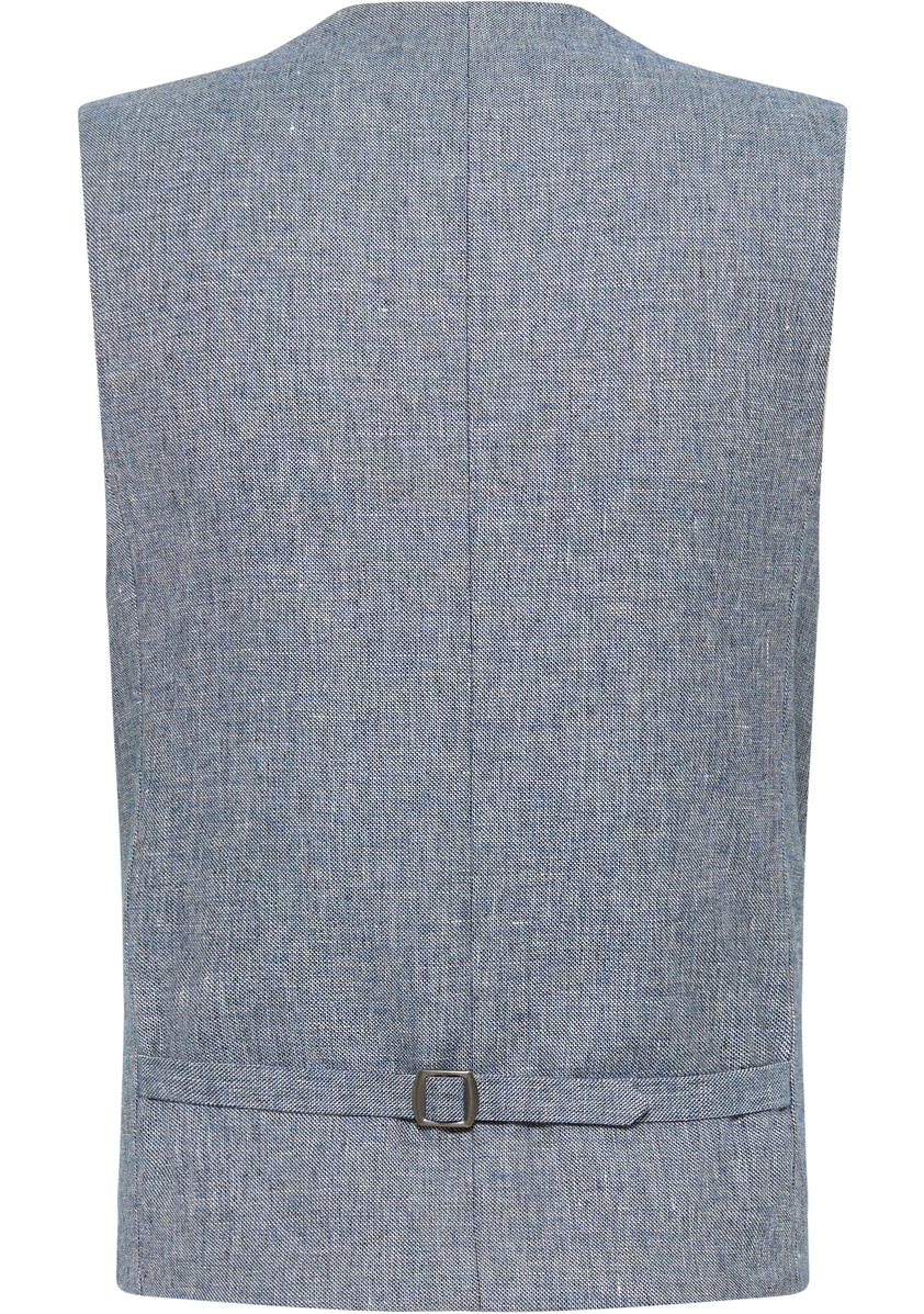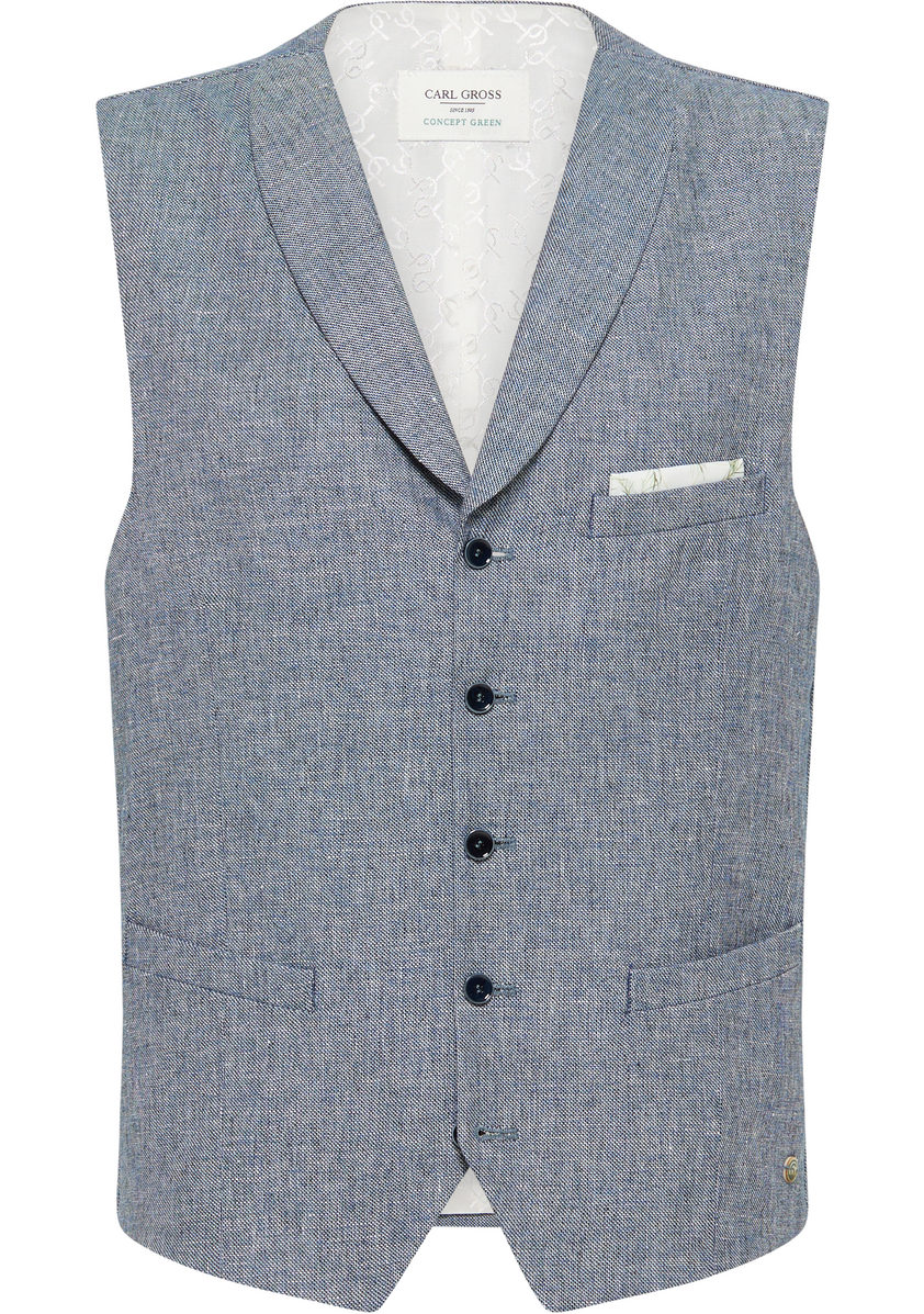 Die Leinen-Mix Weste CG Wicklow aus der Kollektion von CARL GROSS CONCEPT GREEN ist in der Passform mordern fit und hat einen Schalkragen und. Der Oberstoff besteht aus 18% recyceltem Polyester.